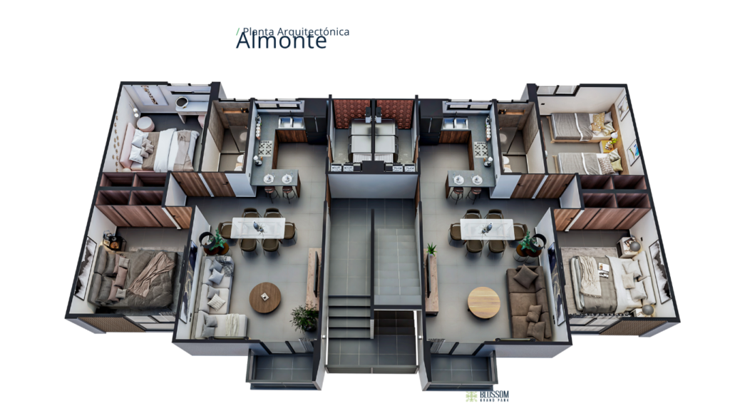 En Blossom, los interiores reflejan una visión clara: calidad, equilibrio y sofisticación. Cada acabado, cada textura y cada espacio fueron pensados para ofrecer una experiencia de vida superior.